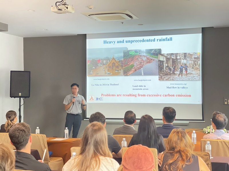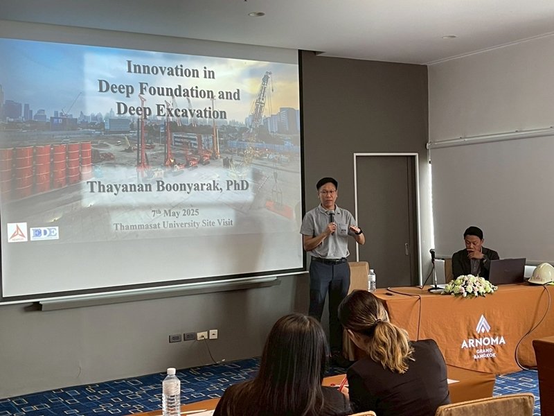 เมื่อวันที่ 7 พฤษภาคม พ.ศ.2568 ที่ผ่านมา นักศึกษามหาวิทยาลัยธรรมศาสตร์ในหลักสูตรนานาชาติ ได้รับฟังการบรรยาย เกี่ยวกับ ประสบการณ์ทำงาน 50 ปี และการดำเนินการด้านความยั่งยืน ของบริษัทบรรยายโดย ดร.ณัฐฐพันธ์ ทัศนนิพันธ์ ผู้ช่วยผู้จัดการใหญ่ บริษัท ซีฟโก้ จำกัด (มหาชน) กับ ดร.ธยานันท์ บุณยรักษ์ กรรมการผู้จัดการ บริษัท อี.ดี.อี. จำกัด และได้พานักศึกษาเยี่ยมชมไซต์งาน โครงการ THE PLATINUM SQUARE เพื่อรับชมการปฏิบัติงานจริงของหน่วยงาน